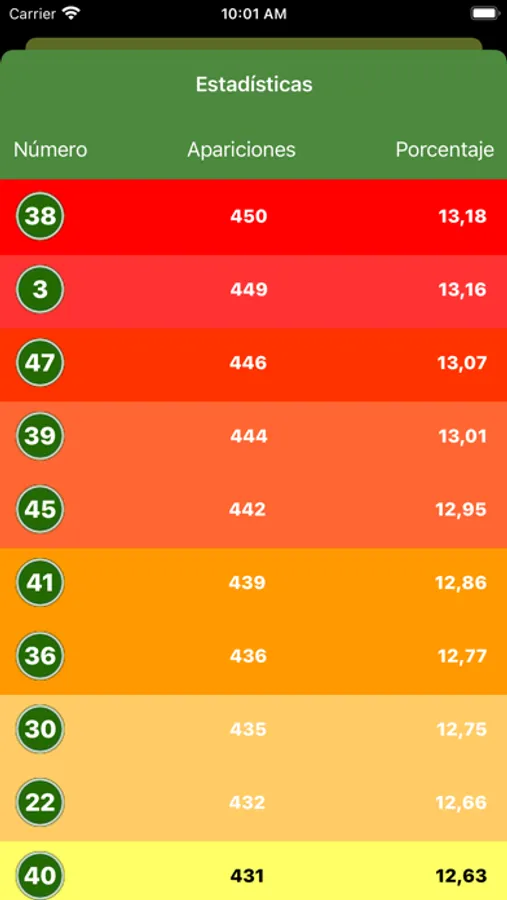 Y si quieren saber que números han salido más o menos veces también pueden consultarlo.