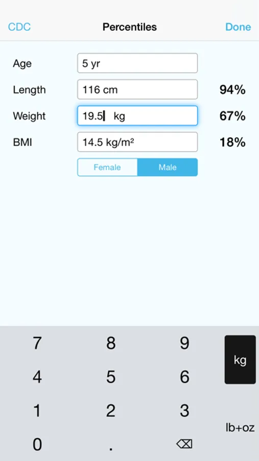 Whether you are a parent caring for your own child or a pediatrician, this growth charts app is for you! It allows you to track childrens' growth over time and display the data points on any of the included WHO and CDC growth charts. You can track height, weight, head circumference and BMI and determine the corresponding percentiles.