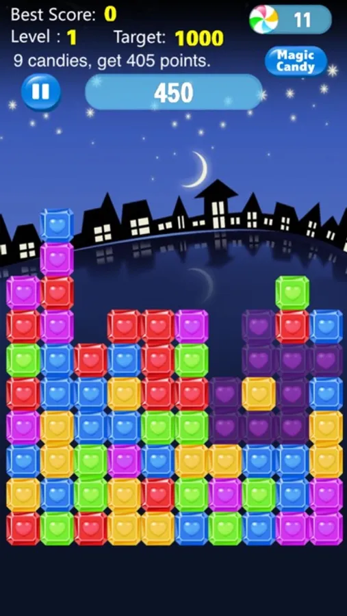 2.Try to clear all Candies, the least Candies you left, the more bonus you will get.