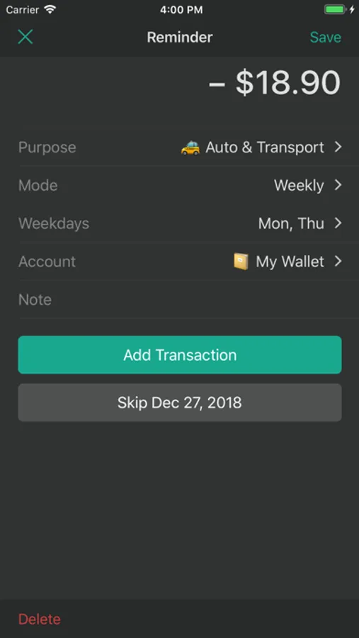 - Transfers between accounts (Double-entry bookkeeping system supported).