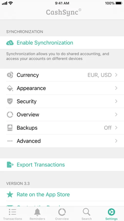 CashSync is a simple, convenient accounting tool with multiple accounts and currencies, cloud synchronization, shared accounting, a reminder system, interactive reports, a built-in calculator, and a currency converter.