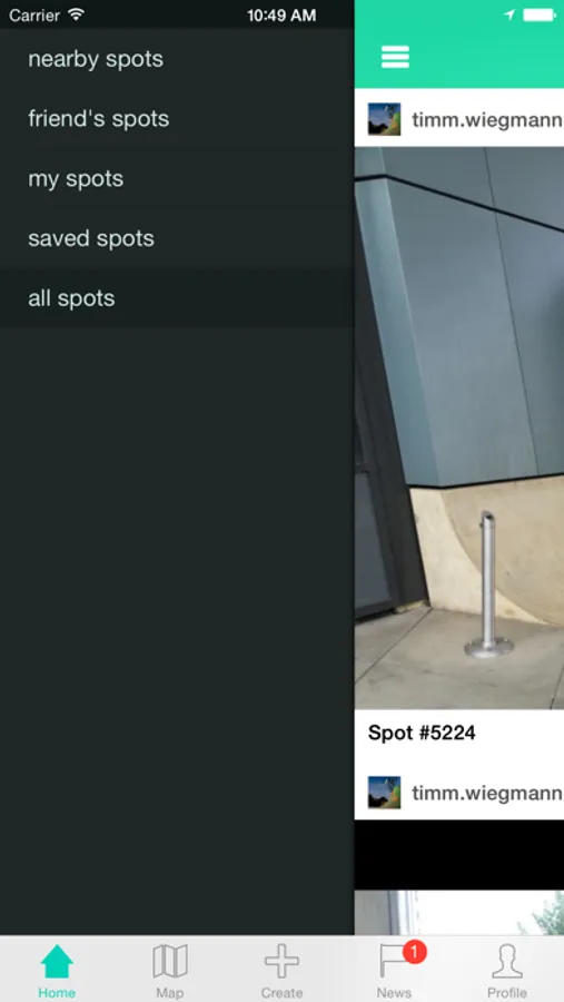 • Spot Feed: See spots near you, all spots being posted, your friends spots, and more.