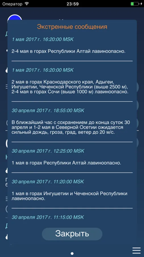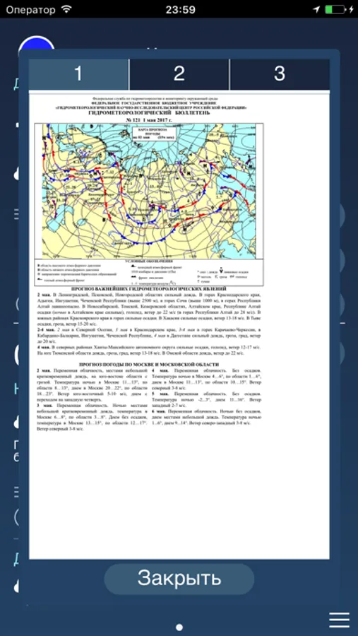 Официальное приложение Росгидромета для отображения гидрометеорологической информации на мобильных устройствах