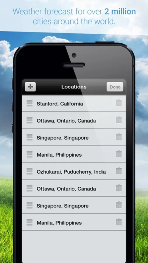 • Add up to any number of locations and track the weather conditions & forecasts of each of them.