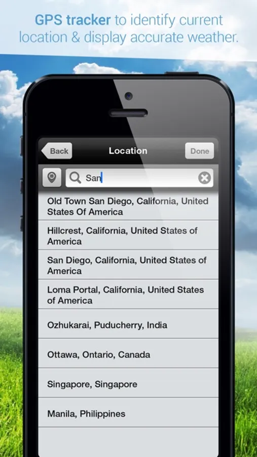 • A GPS tracker to identify your current location and display the current weather conditions there.
