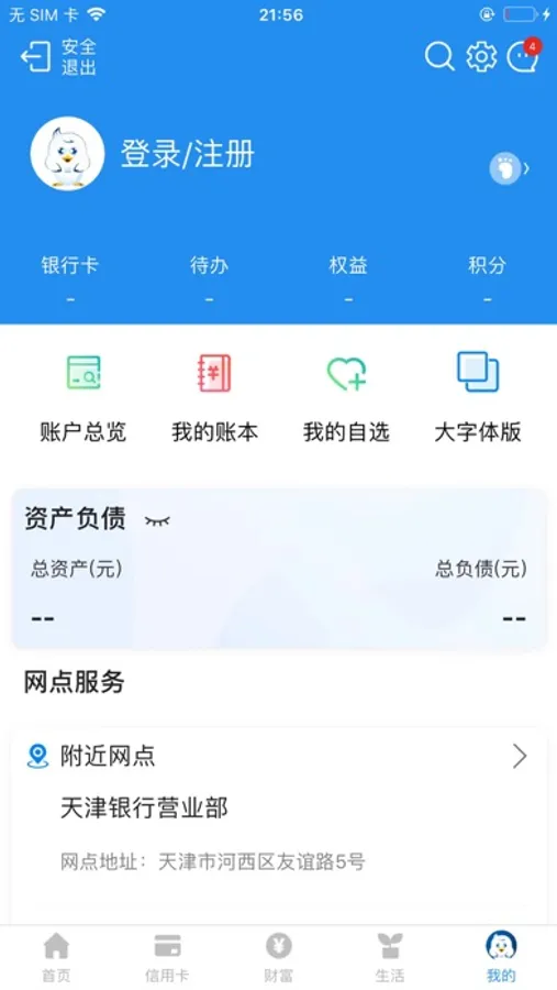 登录手机银行可享受我行金融交易服务:包括加挂及解挂账户、账户余额及明细查询、财富概览、智慧储蓄、资金归集、个人贷款、三方存管、基金理财、证券开户、金融助手、网点查询等。