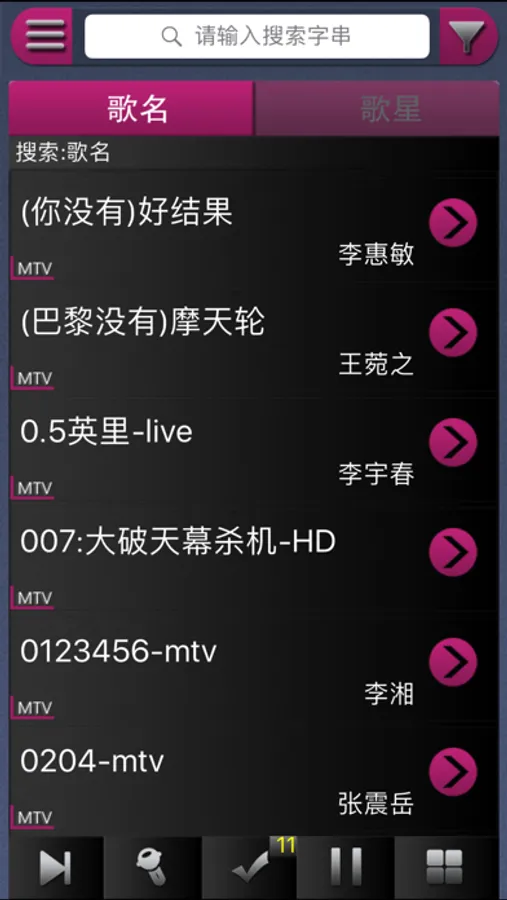 This system supports comprehensive search for songs by singer name and languages, you can find your favorite songs through alphabets, words, strokes and handwritings.