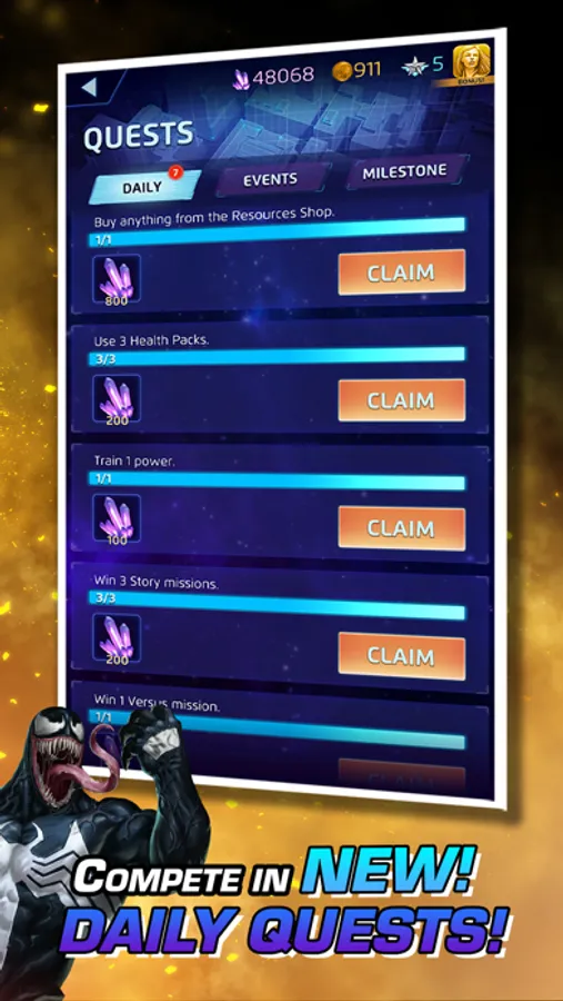 ● Log in daily for rewards with S.H.I.E.L.D. Resupply and for new and exciting challenges!