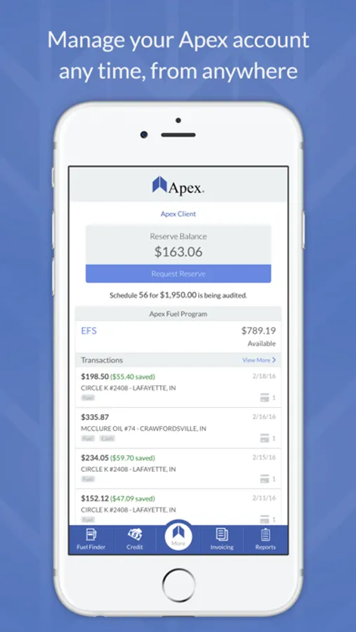 • Send your available Apex Reserve funds to your fuel or bank accounts using FundMe Now™ with a quick push of a button