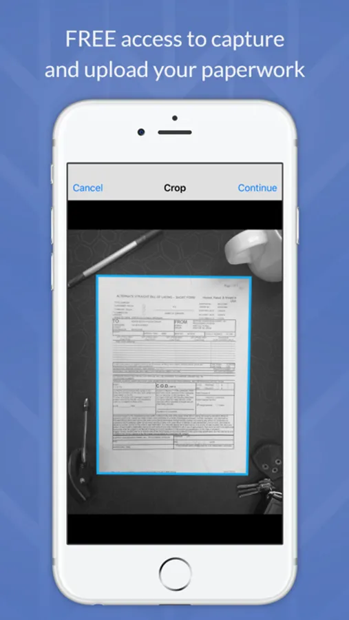 • Capture and upload paperwork directly to home office from the road, for FREE