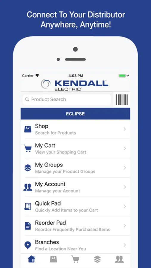 Kendall Electric's OE Touch connects you to your distributor anywhere, anytime. Create orders based on realtime pricing and company-wide availability, view your account information, take photos of requested product, and more…