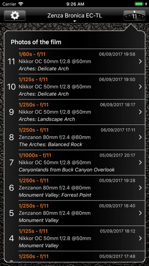 * Save the parameters as EXIF data when you develop your film as jpeg images, by using the free companion app PhotoExif Desktop.