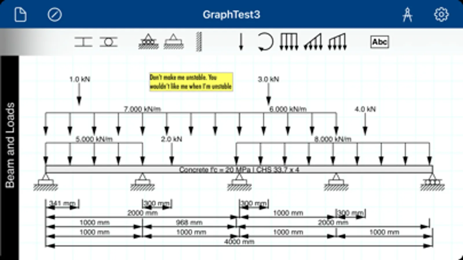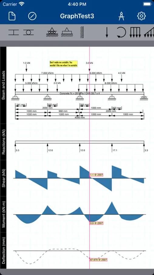 Unlike traditional design tools where you have to define nodes and elements to model your structure, iBeams Pro let's you work like you normally do. You sketch out your beam and loads like you would on a design pad, and instantly view shear, moment, deflection and reactions diagrams.