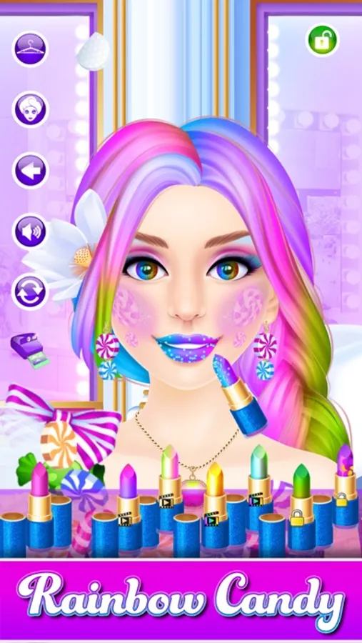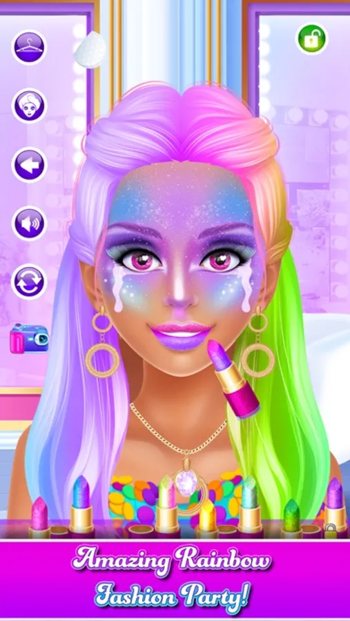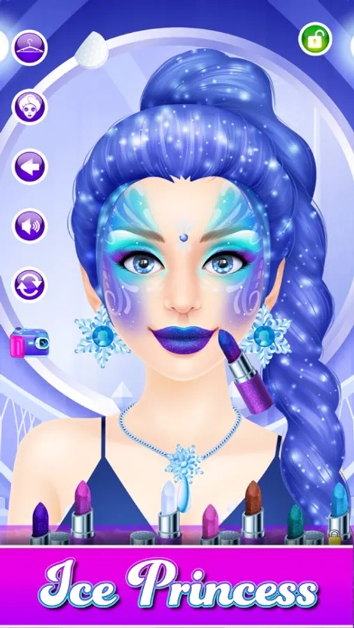 • Makeup Section : Apply makeup including lipstick, eye-shadow, eye-liner, powder and fun fashion face paint! Change hair styles and more!