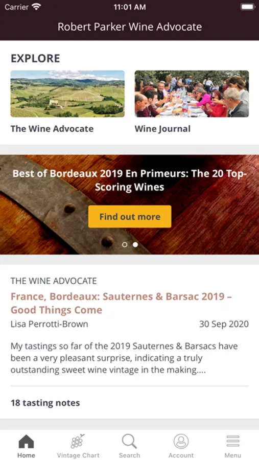 Robert Parker Wine Advocate Mobile App is free to sign up and preview. A subscription is required to view wines and tasting notes from our wine database.