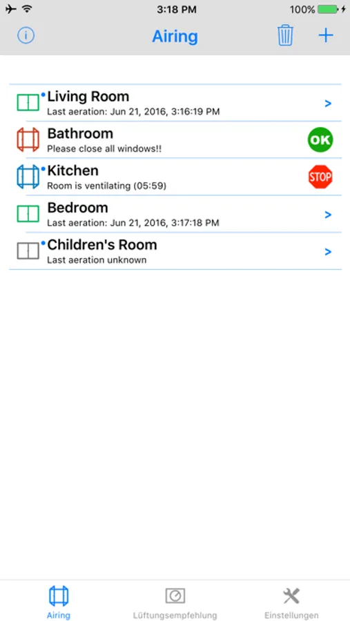 AirBot is the perfect assistance to ventilate rooms and reminds you reminds you of rooms which needs to ventilate or in which windows are open. You decide when and how much time you want to ventilate a room.