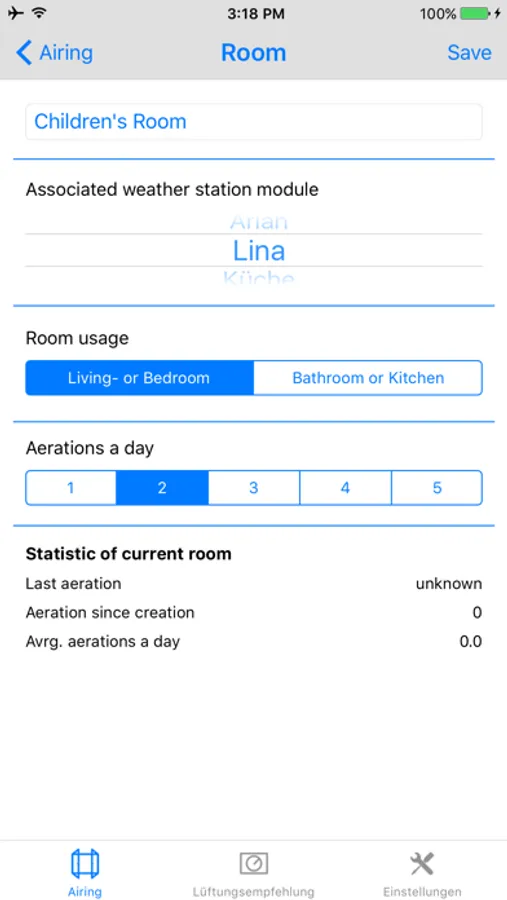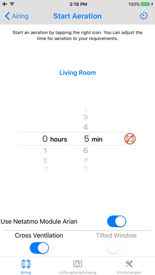 * use your Netatmo weather station for calculating the aeration time and the ventilation recommendation