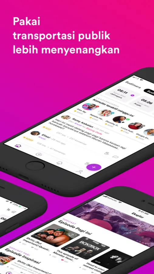 Komuter adalah platform jejaring sosial untuk pengguna transportasi publik seperti CommuterLine, MRT, TransJakarta dan lainnya di Jakarta. Komuter membantu Anda melihat jadwal dan rute perjalanan dengan transportasi publik lebih mudah.