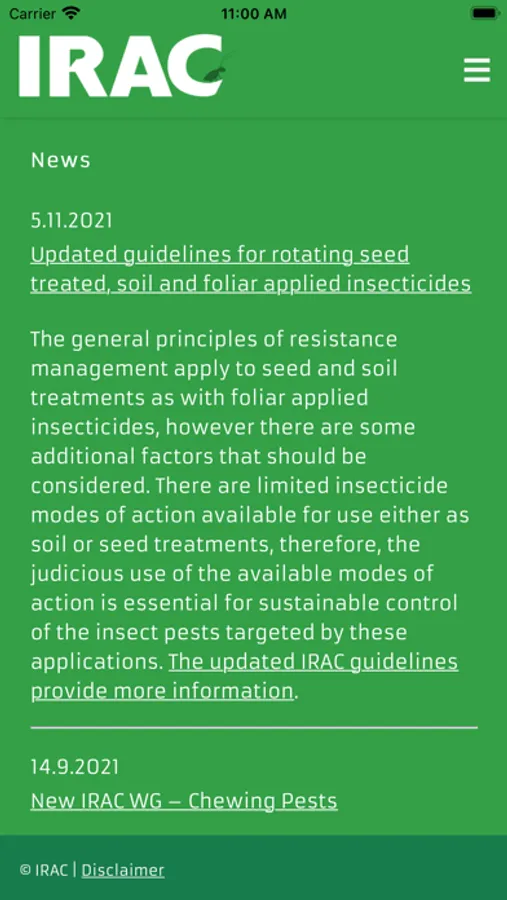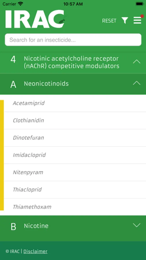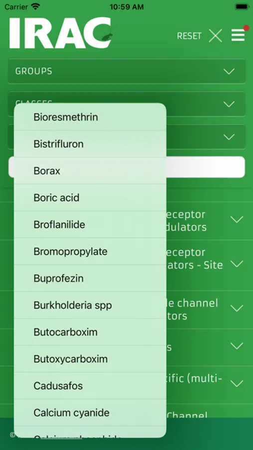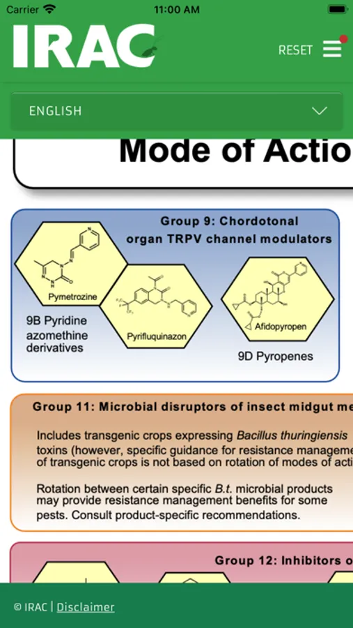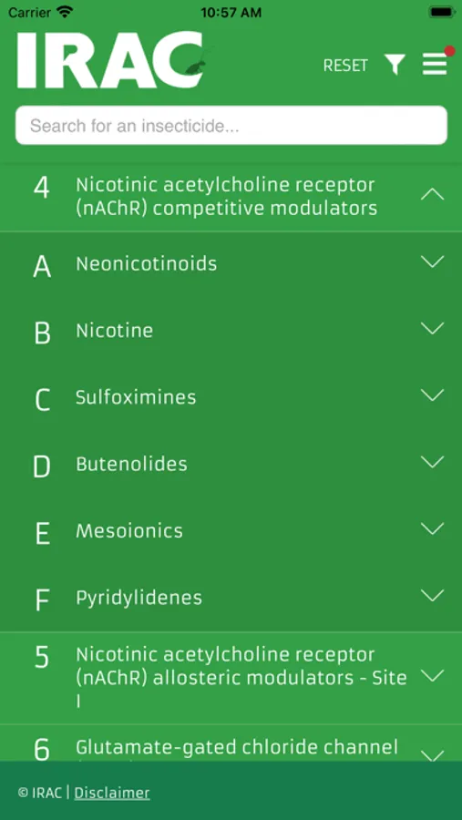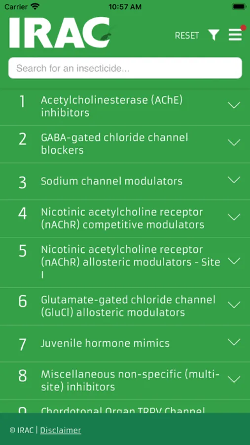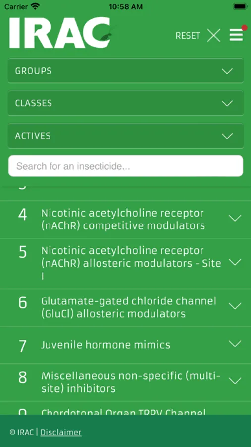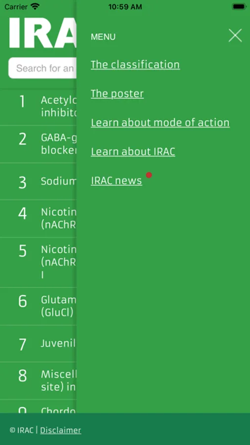 The IRAC Insecticide Mode of Action (MoA) Classification for your mobile device is an easy to use searchable database which allows you to identify insecticide active ingredients and their respective MoA groups without the need for a data connection.