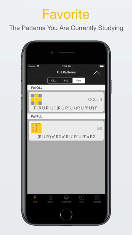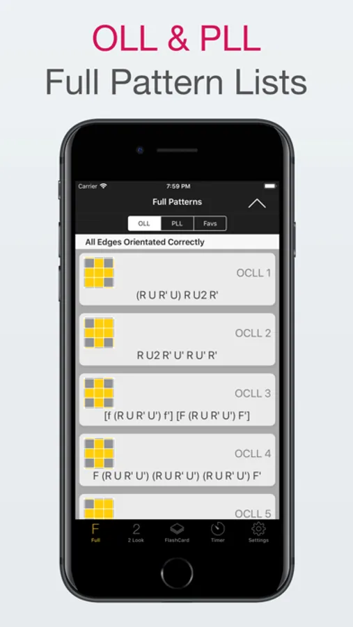• Full OLL and PLL patterns
