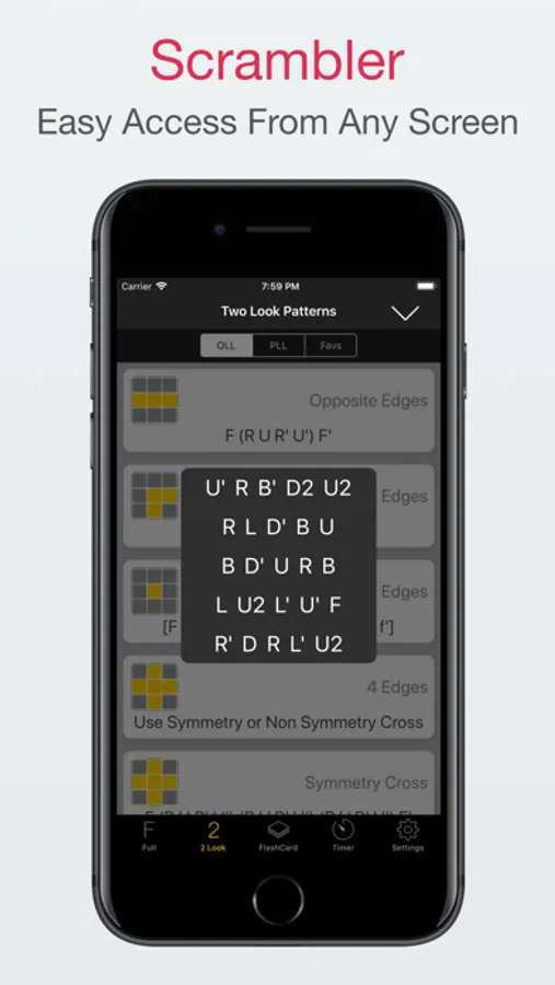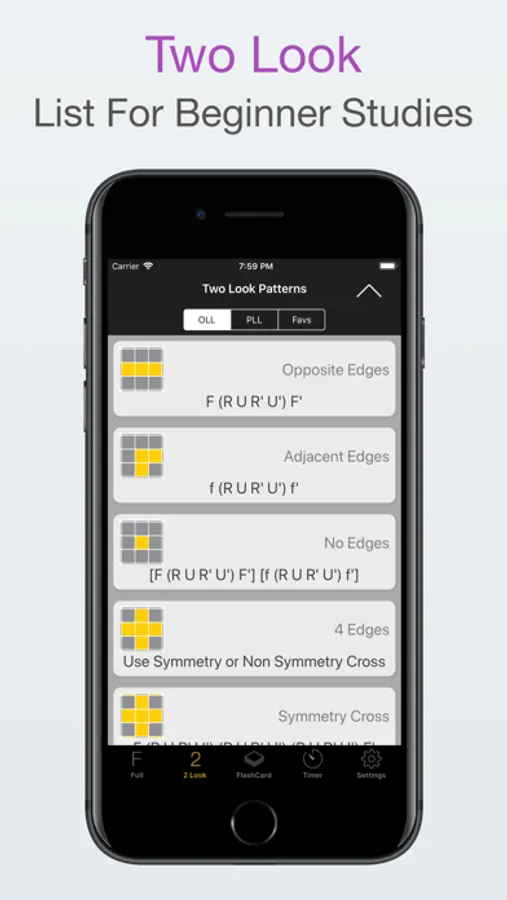 Amazing tool to learn the 2Look OLL and PLL moves of the Fridrich method, using the tried and true flashcard method.