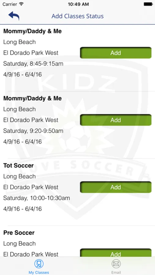 Kidz Love Soccer provides communities in California, Oregon, and Washington with fun, organized soccer classes and camps for children ages 2 - 12 years. We have created this iPhone Application to allow our families to be notified in the event of a class cancellation. The app allows you to identify which of our classes your child is enrolled in and then, via push notification, informs you if your class is cancelled for any reason. Additionally, the app allows you to quickly and easily fill out our online satisfaction survey that is distributed towards the end of each session. Finally, this version offers a quick link that enables you to easily send an email to our customer service team.