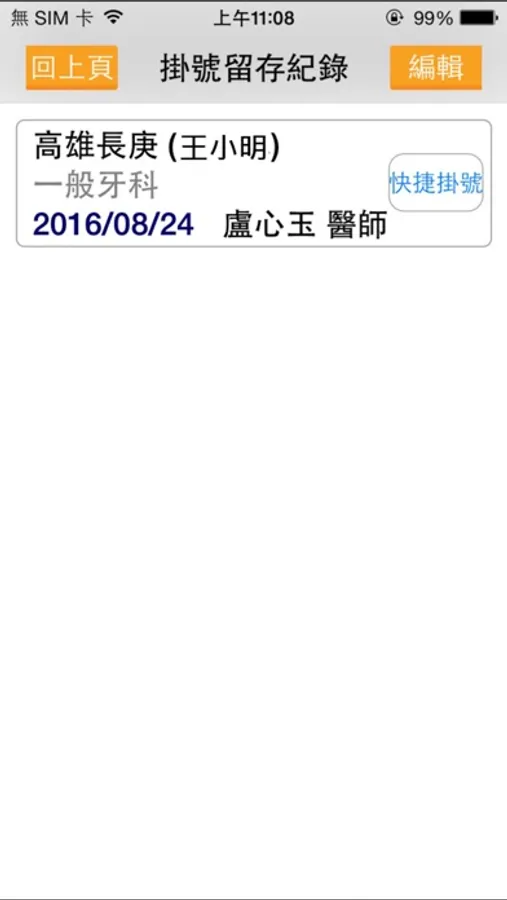 掛號及查詢的資訊留存於手機,透過快捷掛號迅速完成下次看診掛號,節省時間。