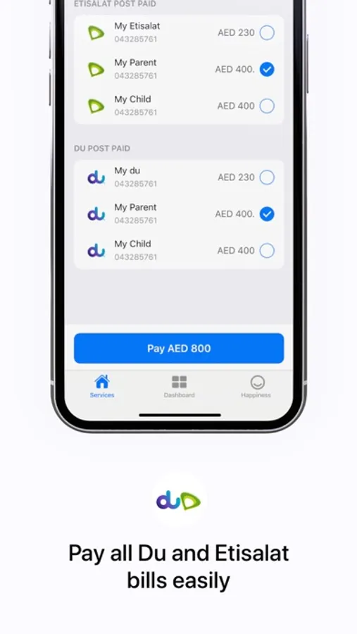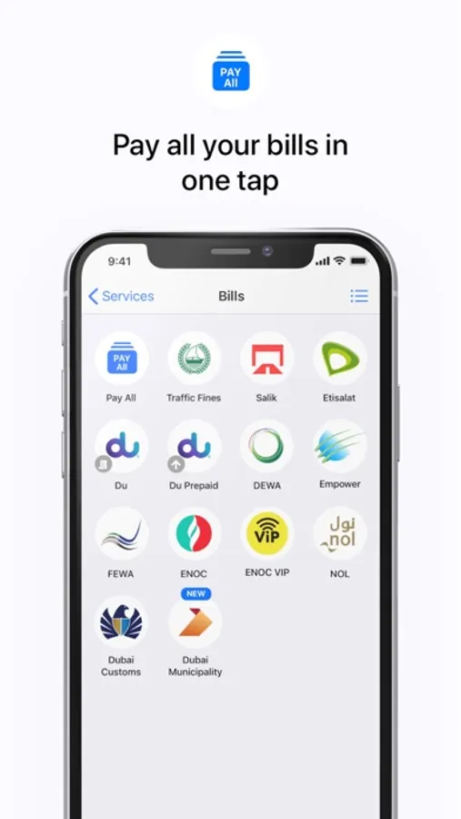 Pay your DEWA, Etisalat, Du, FEWA, Empower and Dubai Municipality bills and fees