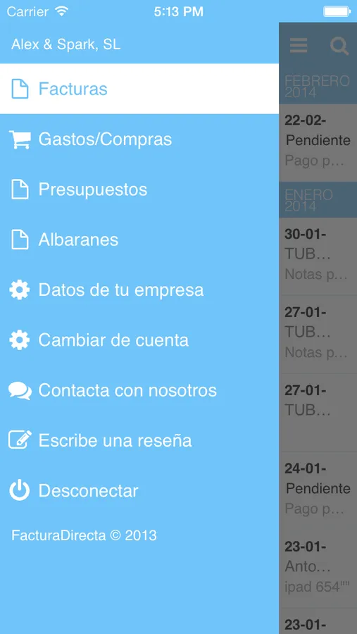 FacturaDirecta es un programa de facturación basado en tecnología web que permite la creación, envío, gestión y supervisión de facturas, presupuestos, gastos, albaranes y pedidos directamente desde el navegador web, sin necesidad de instalar nada en el ordenador.