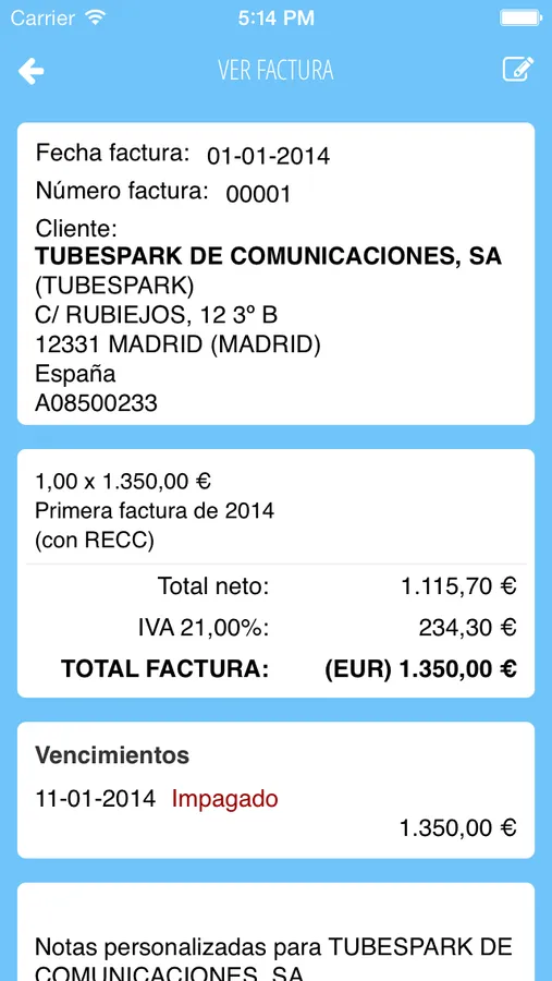 · Modifica y guarda los datos fiscales de tu empresa desde la app móvil.