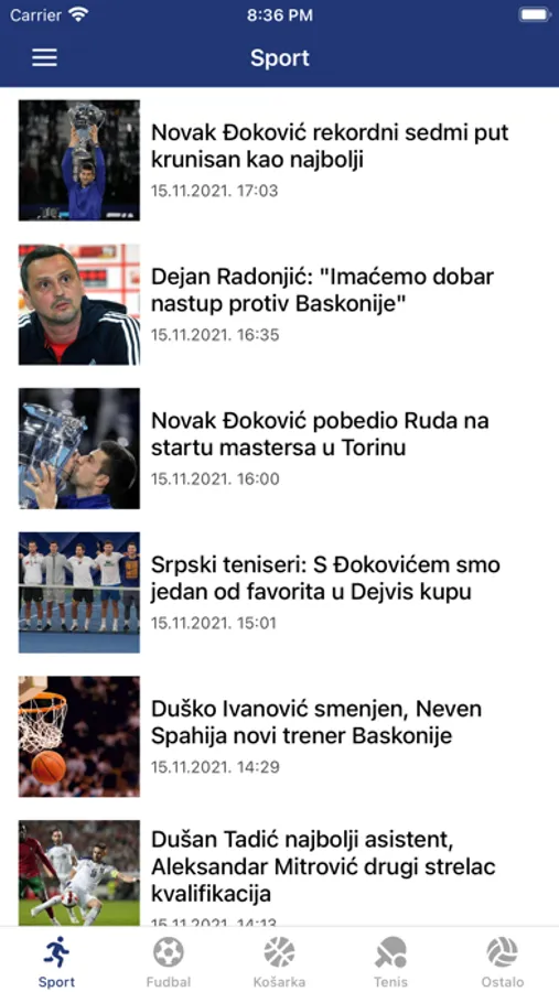 • Sportske informacije (fudbal, košarka, tenis i drugi sportovi)