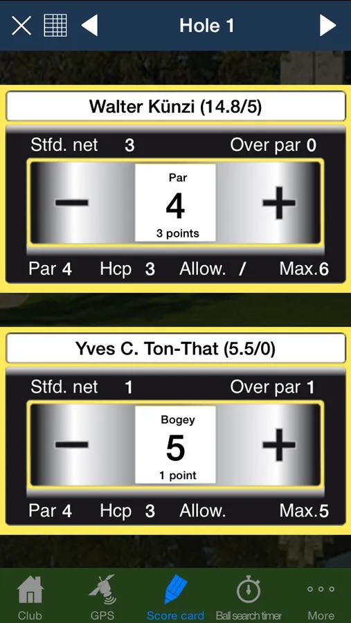 ▸ Automatic calculation of the Playing Handicap and Stableford points.