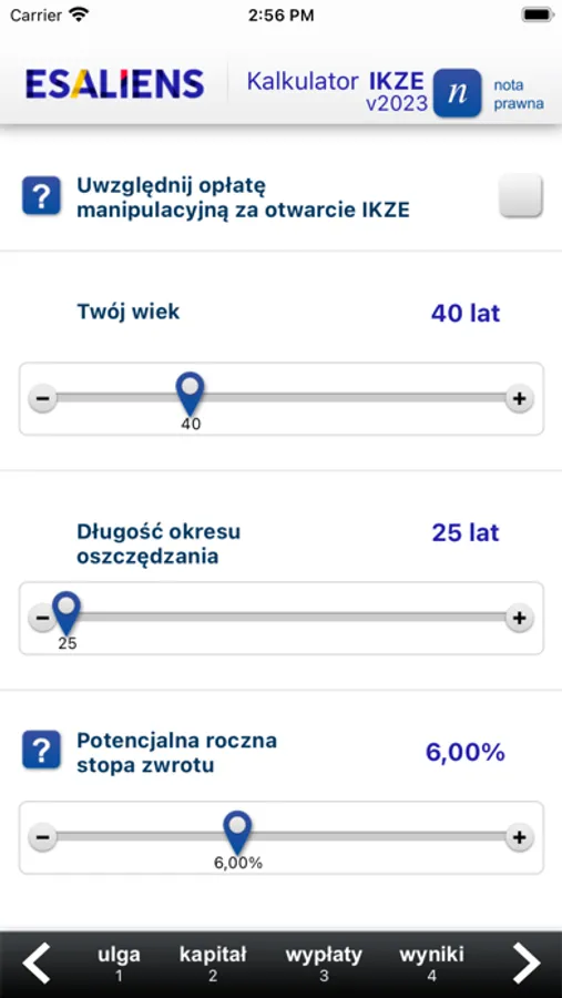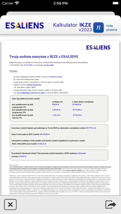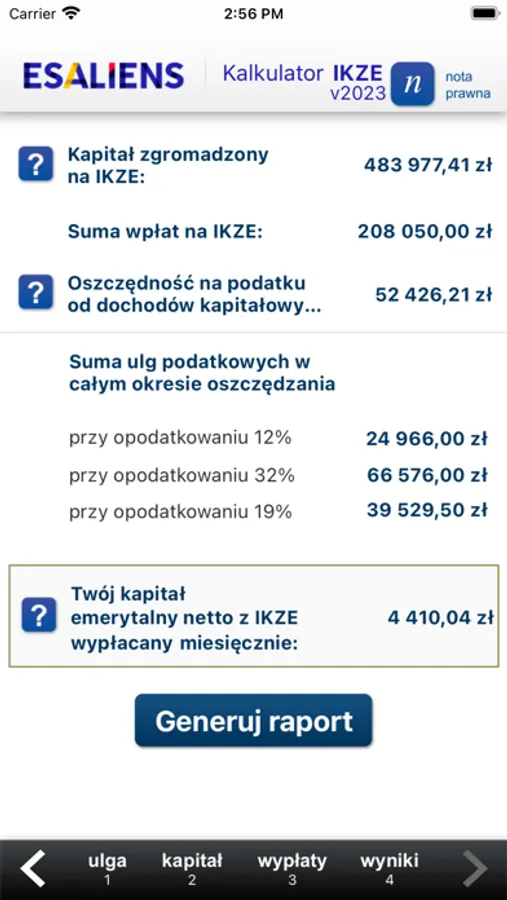 Kalkulator IKZE to narzędzie dla oszczędzających lub zainteresowanych oszczędzaniem w ramach Indywidualnego Konta Zabezpieczenia Emerytalnego (IKZE). Kalkulator pozwala oszacować wysokość ulgi podatkowej przy rozliczaniu z fiskusem, którą osiągnąć można dzięki odkładaniu środków na IKZE. Ponadto, po zdefiniowaniu przez użytkownika kilku zmiennych kalkulator wylicza m.in. kwotę zgromadzonego na IKZE kapitału z podziałem na dokonane wpłaty i potencjalny zysk oraz wysokość potencjalnego, prywatnego dochodu emerytalnego osiąganego z IKZE na emeryturze. Na koniec istnieje również możliwość wygenerowania spersonalizowanego raportu z wyliczeń w formie pliku PDF, dzięki któremu można w prosty sposób dokonywać symulacji i analiz przy różnych założeniach.