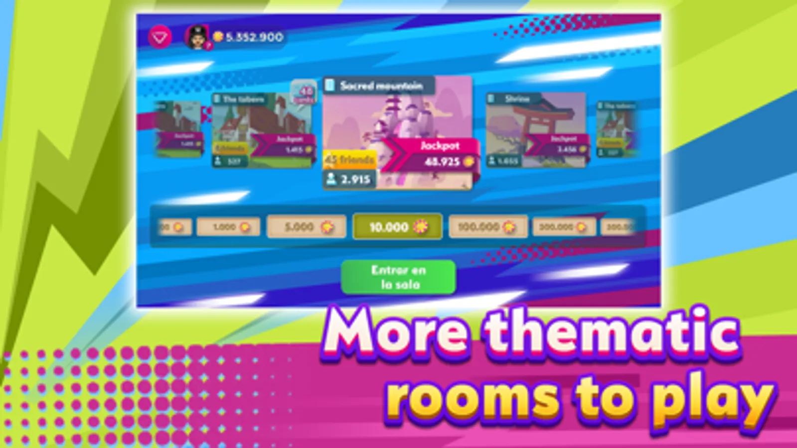 - Choose among more than 60 rooms, 200 levels to complete and you can play and bet up to 24 cards at a time!!