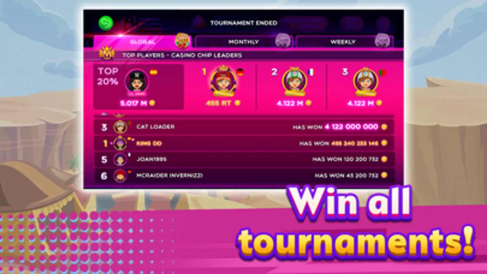 - You can play online against thousands of players in REAL TIME, with different options of bets to reach higher levels and win Jackpots