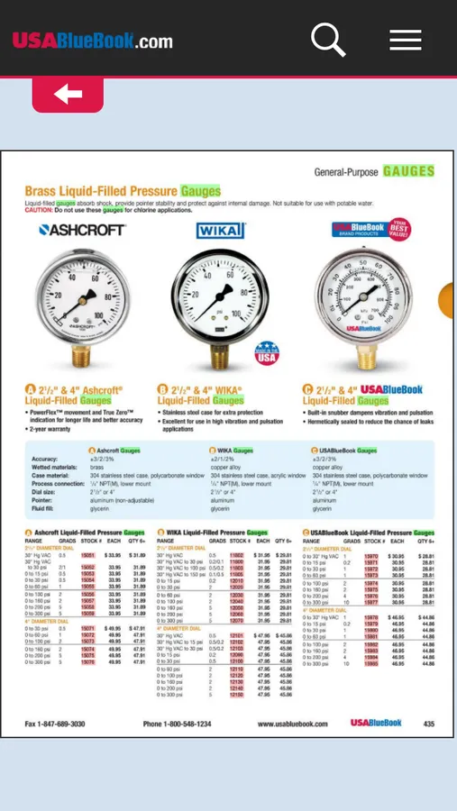 * Links to USABlueBook's website where you can view thousands of product manuals, performance specification sheets, MSDSs and more!
