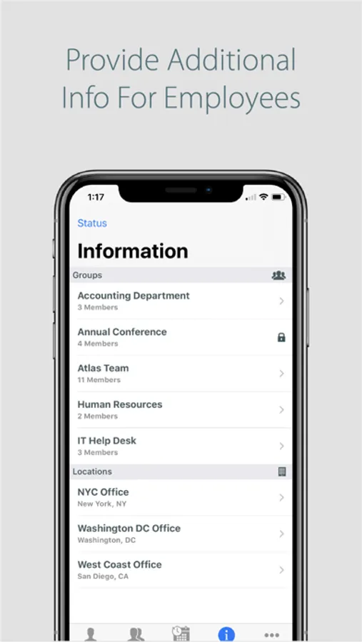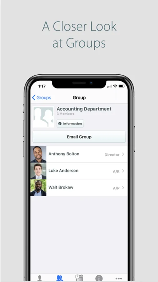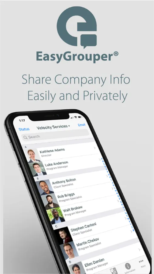 EasyGrouper Connect is the easiest way for company employees to have all the information they need right in one place in their phone. Whether it is finding a coworker’s contact information, real-time updates to the team on what you are doing, or creating separate groups to ensure that teams can communicate more effectively - EasyGrouper is the answer for you. Provide employees with a tool that will help them work smarter, more efficiently, with a lot less hassle and the corporate privacy you need.