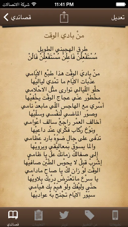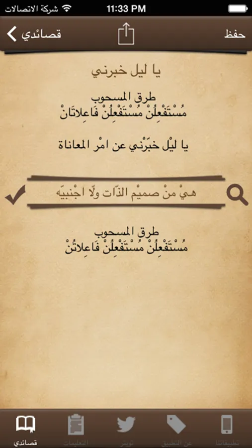 كما يمكنك حفظ جميع قصائدك والعودة إليها في أي وقت والتعديل عليها.