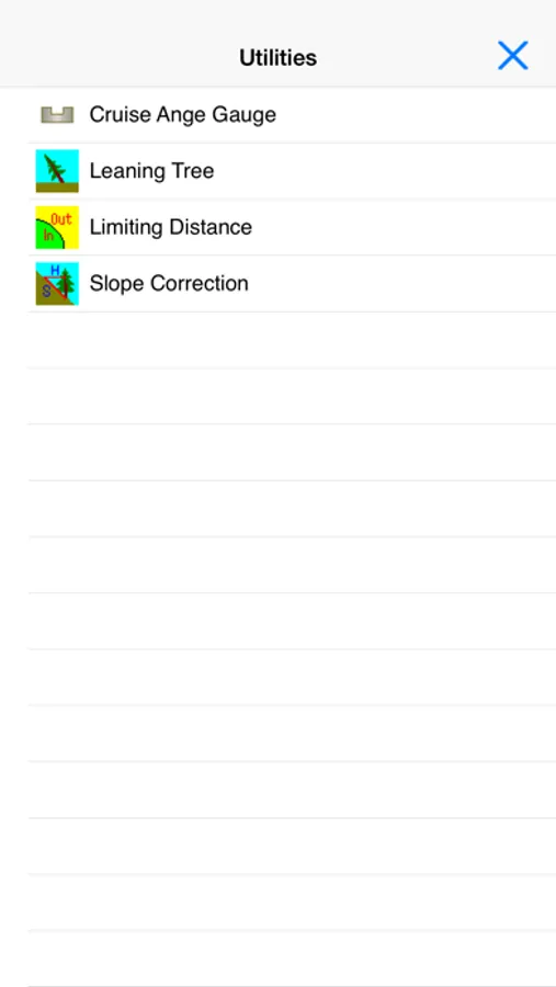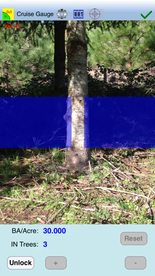 The Cruise Angle iCMT app can turn your iPad, iPod or iPhone into an angle gauge for selecting sample trees for timber cruising. When using the point sampling method for timber inventory, the forester first determines a suitable Basal Area Factor (BAF) for the timber stand. Then the corresponding angle gauge is used to select the sample trees. At each sampling point, the forester scans the trees through the opening of the angle gauge. Any tree that completely fills the opening is deemed a sample tree. From the tally of sample trees, one can obtain the basal area per acre. Instead of bringing along a few angle gauges, you could just as well use the Cruise Angle iCMT app on your iOS mobile device to pick the sample trees.