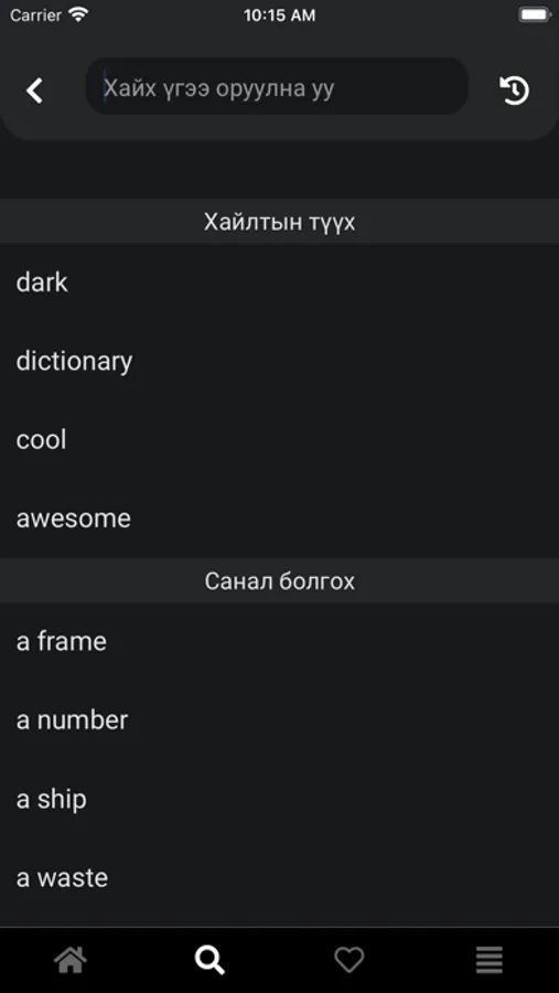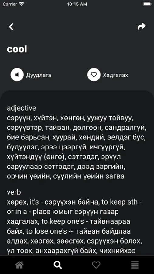 Easy to use - WORKS OFFLINE! Fastest and richest English-Mongolian, Mongolian-English, Russian-Mongolian, and Mongolian-Mongolian translator. Translate words and phrases, and you can even add your own translation suggestions.