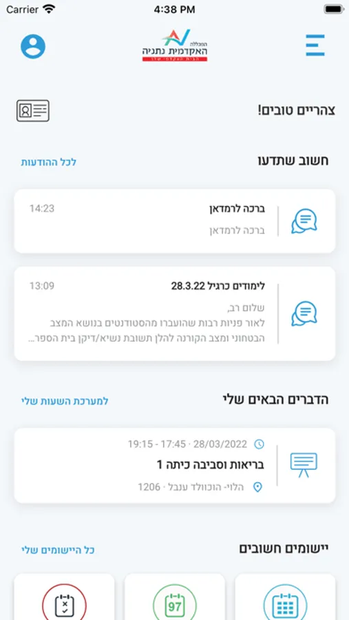 אפליקציה לסטודנטים ולמרצים של מכללת נתניה כאן תוכלו להתעדכן במערכת שעות, ציונים, לוח בחינות וכו'.