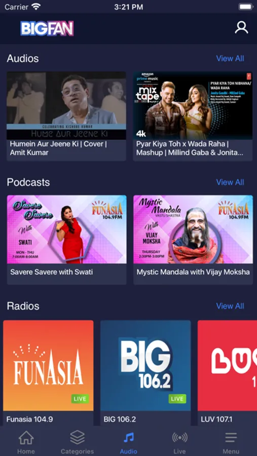 Searching for an entertainment partner? Look no further! BigFANTV Now with its library of thousands of Online Movies, Original Web Series & Films, TV Shows, Quickies, and over huge library of Music Titles is here to keep you entertained. Producers and curators of some of the best of Indian entertainment, we have content across genres in 16 languages for a family of fans in 150+ countries around the world.