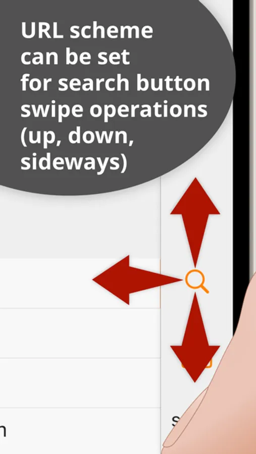 The search execution button can be assigned different URL schemes for tap (default), up-swipe, side-swipe, and down-swipe, allowing not only search, but also integration with your favorite apps.