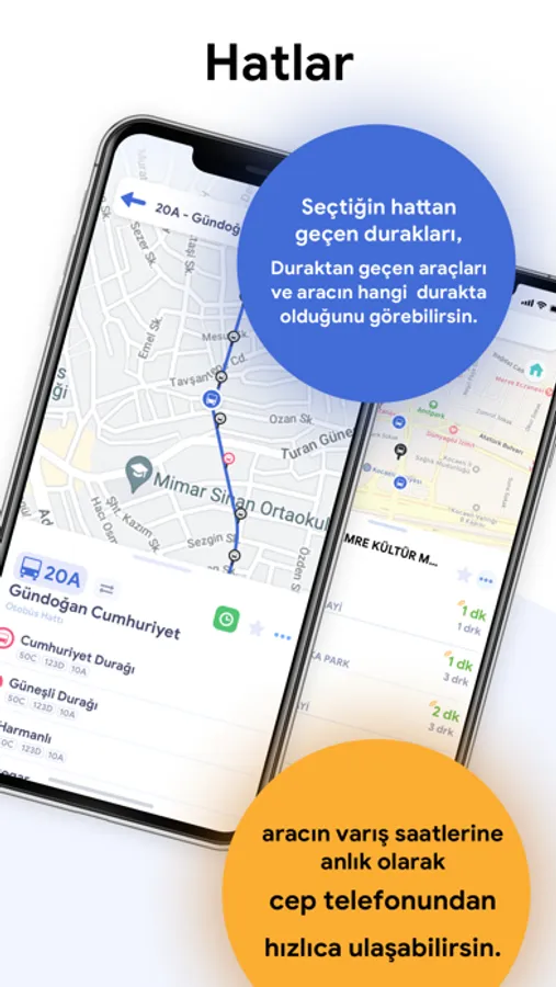 Durağa yaklaşan otobüsleri, yakınınızdaki bayileri görebilir, otobüslerin hareket saatlerini öğrenebilirsiniz. Tüm bu özellikler ücretsiz, şimdi siz de kullanmaya başlayın!