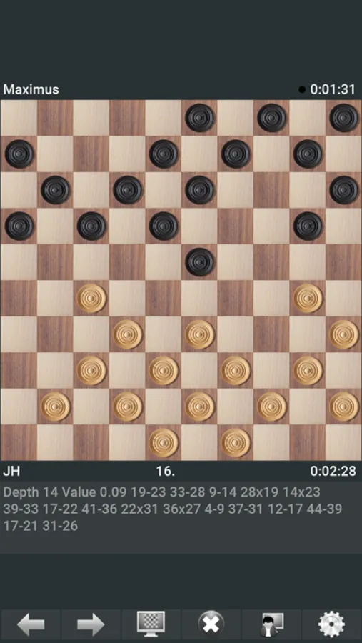 You don’t have to be an expert player to enjoy Maximus, however, as there are many levels of difficulty. Starting with a level to explore the rules of the game, at which Maximus always plays a random move. Then there are ten training levels, from beginner to expert, that you can try before you start giving Maximus more time to think. Improve your play by analyzing your games with Maximus and learning from your mistakes. You can also use the program as a draughts travel set or as a draughts notation booklet, or even in your draughts competition if you are one player short!