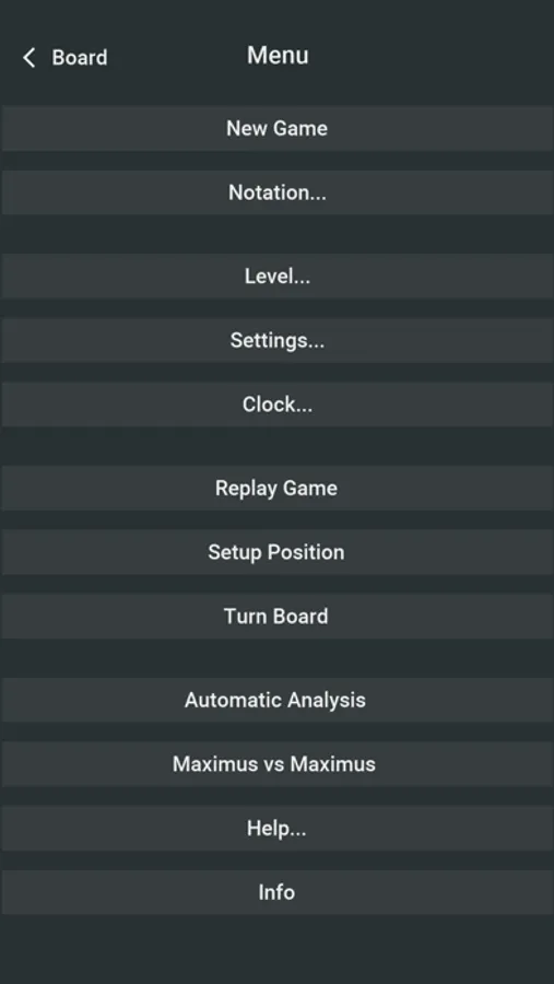* Other options: turn board, setup position, automatic replay