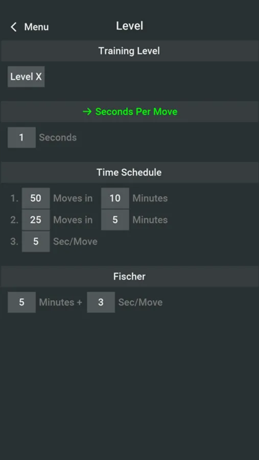* Strong engine with 4 playing modes: 1) rules of the game plus 10 training levels; 2) seconds per move; 3) time schedule; 4) Fischer system