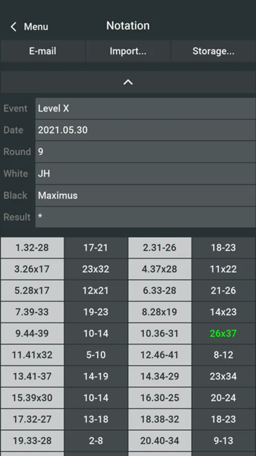 * Save, load, e-mail and import games and positions in Portable Draughts Notation format (PDN)