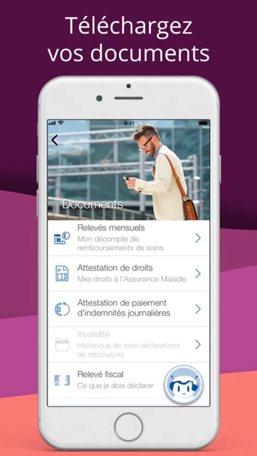 Connectez-vous à votre compte avec votre numéro de sécurité sociale et votre code personnel ou via l'authentification biométrique (disponible sur smartphone) et accéder à tous les services suivants :