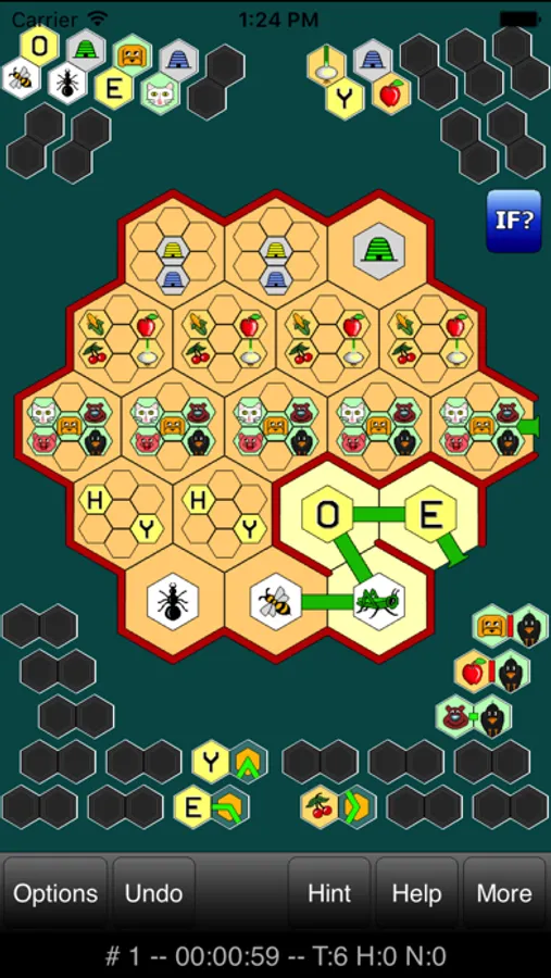 Honeycomb Hotel is a game of logic and deduction. The Pro version provides 600 puzzles, 200 in each of small, medium and large sizes. The goal of each puzzle is to determine the placements of images within the honeycomb (up to 37 different cells on the large puzzles) and to determine the exact path that runs through each cell of the honeycomb. You're provided with sufficient clues (presented graphically) to determine all of this using clear, cold, precise logic. Are you up to the task, or are you too buzzy?